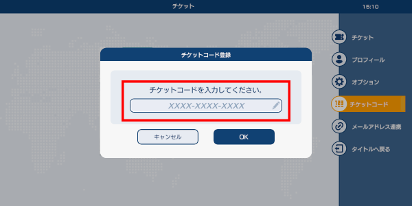 入力欄にチケットコードを入力して登録した後「OK」を押してください。
