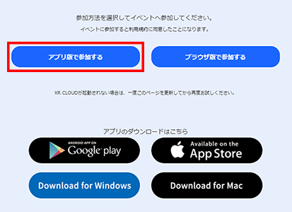 「アプリ版で参加する」を押してください。