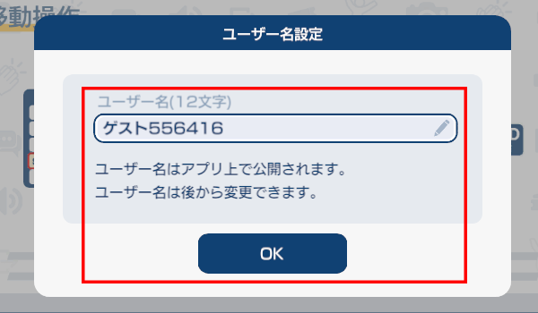 ユーザー名の欄に任意の名前を入力後、OKを押してください。