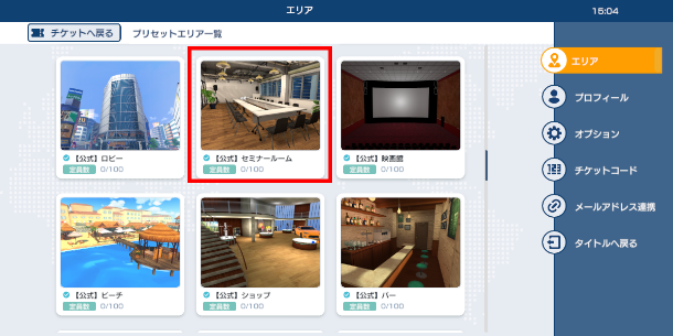 イベント対象エリアが表示されるので、入場するエリアを選択してください。