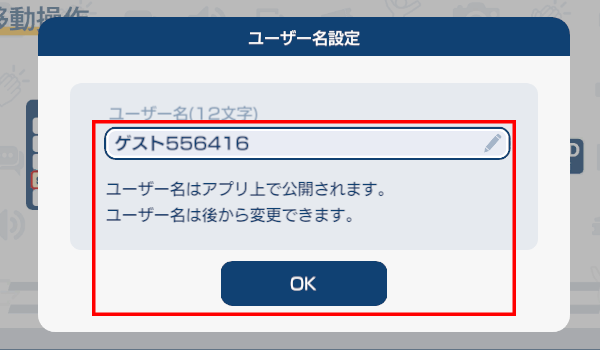 ユーザー名の欄に任意の名前を入力後、OKを押してください。