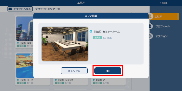 エリア詳細画面が表示されるので「OK」を押してください。